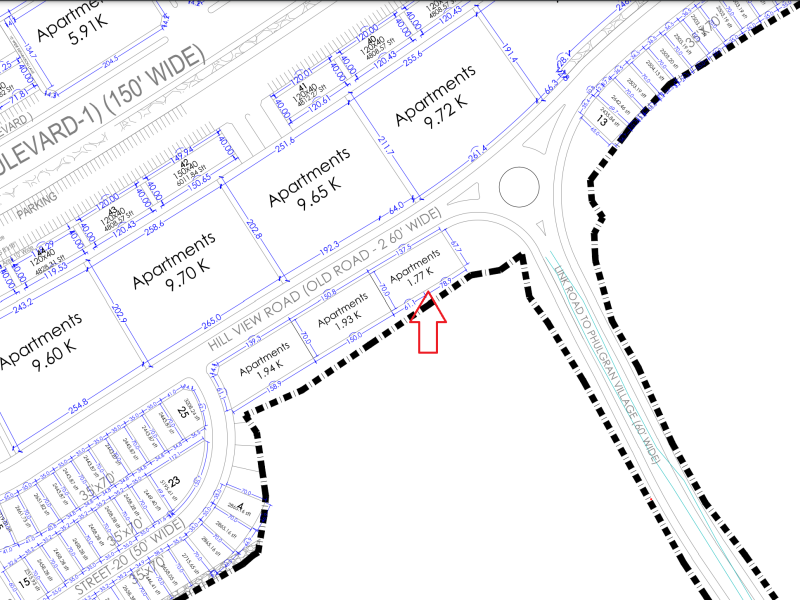 - 150 Ft. Wide Main Boulevard Road and 50 Ft. Wide Service Road.